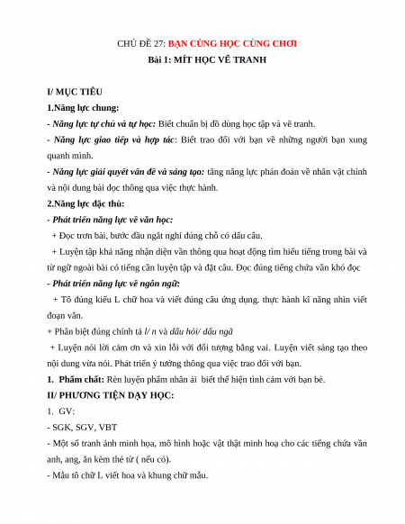 Bài 1: MÍT HỌC VẼ TRANH I/ MỤC TIÊU 1.Năng lực chung: