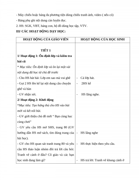 Giáo án Tiếng việt 1 Chân trời sáng tạo Bạn cùng học cùng chơi