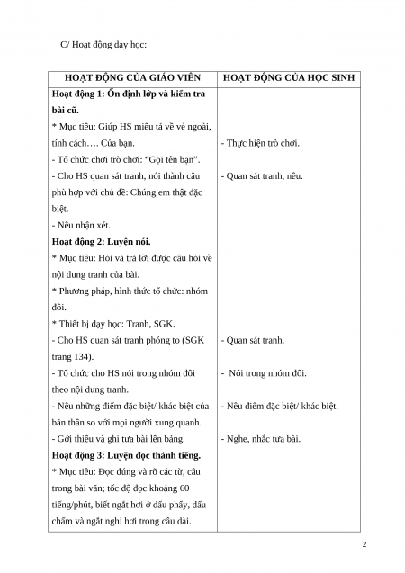 Giáo án Tiếng việt 1 Chân trời sáng tạo Chúng mình thật đặc biệt
