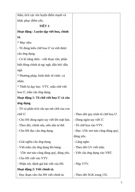 - Tô đúng kiểu hoa chữ Ư và viết câu ứng dụng. Thực hành kĩ năng nhìn – viết đoạn văn.