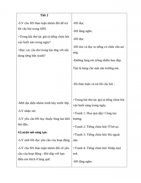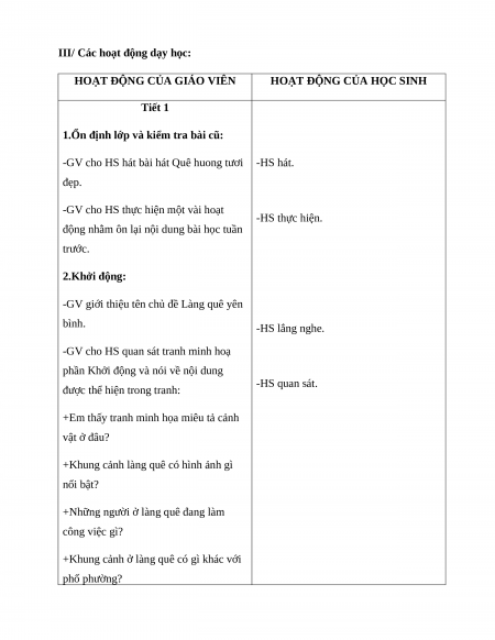 Giáo án Tiếng việt 1 Chân trời sáng tạo Làng quê yên bình