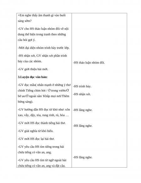 -GV cho HS thảo luận nhóm đôi để trả -HS đọc. lời câu hỏi trong SHS. -HS lắng nghe.