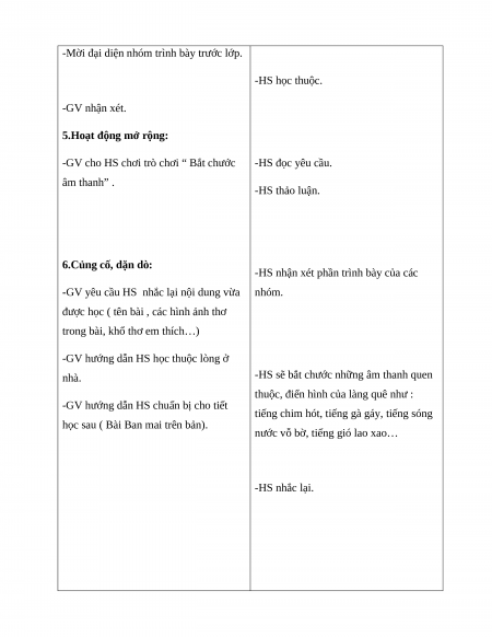 -Chỉ ra được các chi tiết / hình ảnh trong bài thơ.Kết nối hình ảnh với ngôn ngữ thể