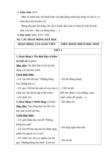 Giáo án Tiếng việt 1 Chân trời sáng tạo Những bông hoa nhỏ