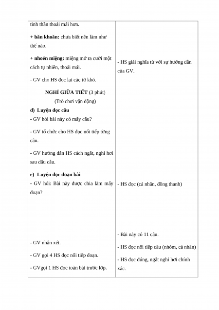 - Đọc trơn bài đọc, bước đầu ngắt nghỉ đúng chỗ có dấu câu. Cách thực hiện: a) Đọc thầm