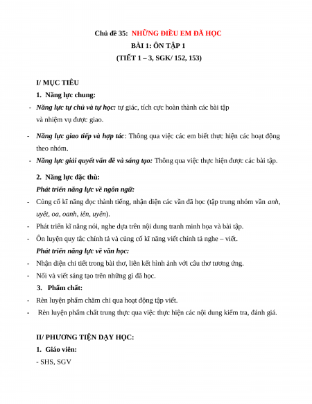 Chủ đề 35: NHỮNG ĐIỀU EM ĐÃ HỌC BÀI 1: ÔN TẬP 1