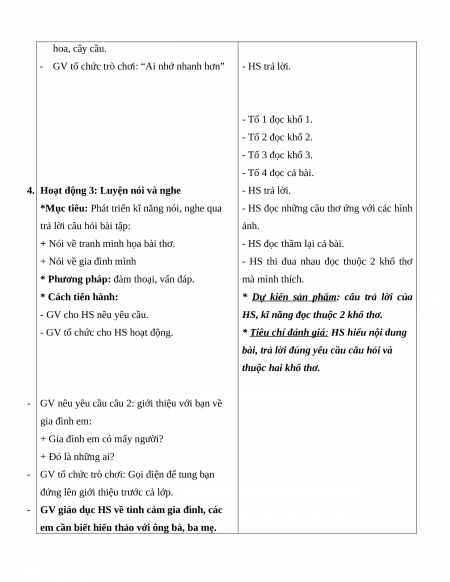 4. Hoạt động 3: Luyện nói và nghe