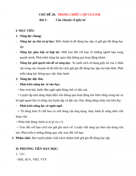 CHỦ ĐỀ 28: TRONG CHIẾC CẶP CỦA EM