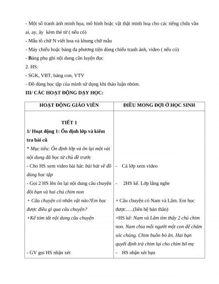 - Máy chiếu hoặc bảng đa phương tiện dùng chiếu tranh ảnh, video ( nếu có)