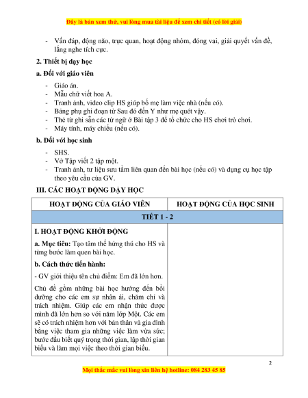 CHỦ ĐIỂM 1: EM ĐÃ LỚN HƠN (TUẦN 1-2)