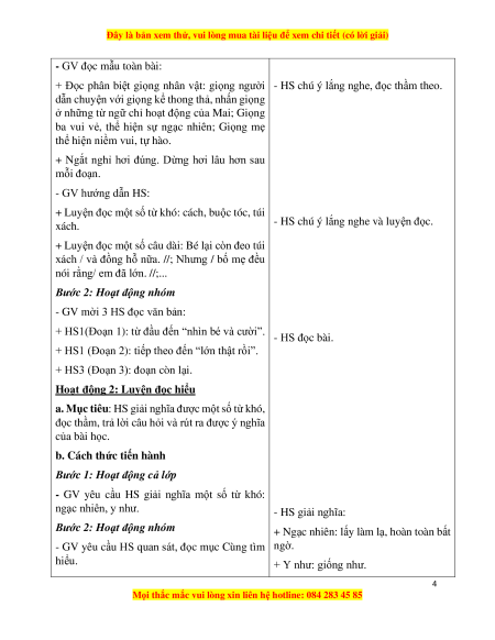 a. Mục tiêu: HS đọc văn bản Bé Mai đã lớn