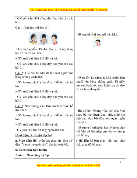 - Đọc trôi chảy bài đọc, ngắt nghỉ đúng dâu câu, đúng logic ngữ nghĩa; phân