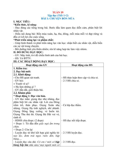 BÀI 1: CHUYỆN BỐN MÙA I. MỤC TIÊU: *Kiến thức, kĩ năng: