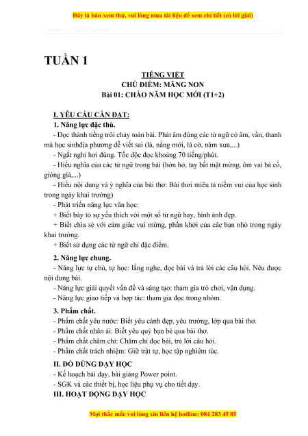 Bài 01: CHÀO NĂM HỌC MỚI (T1+2)