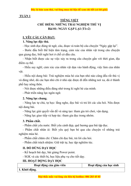 Bài 01: NGÀY GẶP LẠI (T1+2)