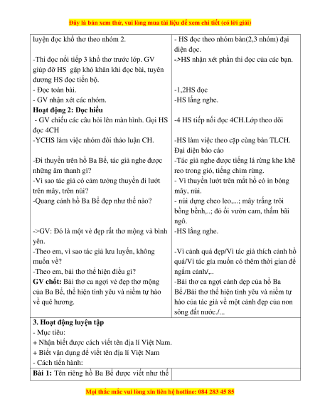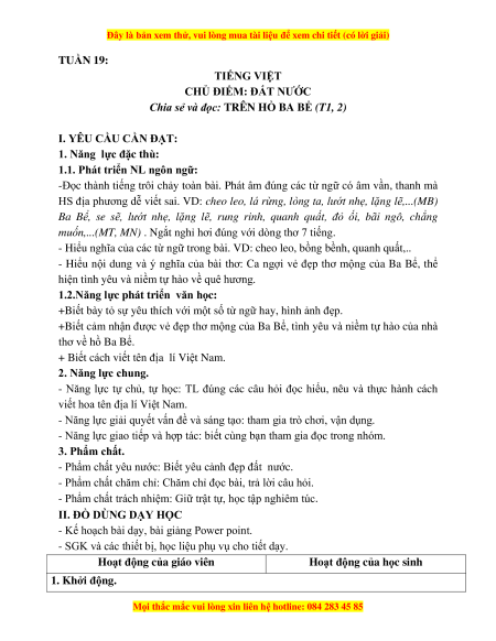 Chia sẻ và đọc: TRÊN HỒ BA BỂ (T1, 2) I. YÊU CẦU CẦN ĐẠT: