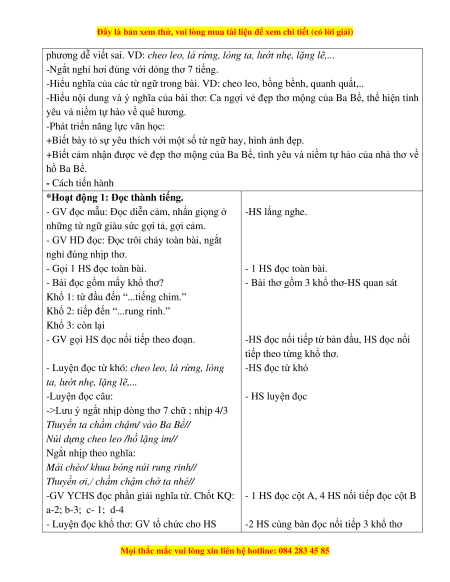 - Luyện đọc từ khó: cheo leo, lá rừng, lòng -HS đọc từ khó