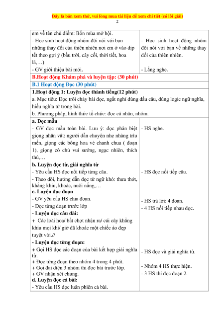 - GV đọc mẫu đoạn từ Các loài hoa đến hết.