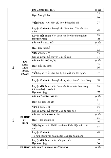 BÀI 10: THỜI KHÓA BIỂU (6 tiết) ĐI HỌC 45 5 VUI