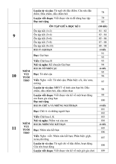 ÔN TẬP GIỮA HỌC KÌ 1 (10 tiết) Ôn tập tiết (1+2) 81 - 82 9 Ôn tập tiết (3+4) 83 - 84 Ôn tập tiết (5+6) 85 - 86 Ôn tập tiết (7+8) 87 - 88 Ôn tập tiết (9+10) 89 - 90 BÀI 17: GỌI BẠN (4 tiết) 91 Đọc: Gọi bạn 92 Viết: Chữ hoa H 93