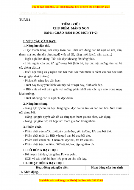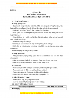Bài 01: CHÀO NĂM HỌC MỚI (T1+2) I. YÊU CẦU CẦN ĐẠT: 1. Năng lực đặc thù.