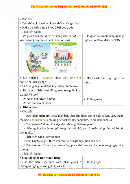 - SGK và các thiết bị, học liệu phụ vụ cho tiết dạy.