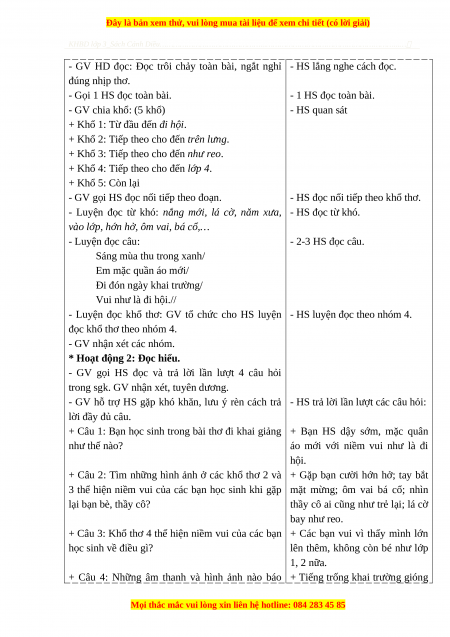 - Hiểu nội dung và ý nghĩa của bài thơ: Bài thơi miêu tả niềm vui của học sinh trong ngày khai trường)