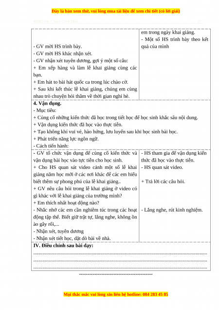 + Biết chia sẻ với cảm giác vui mừng, phấn khởi của các bạn nhỏ trong ngày khai trường.