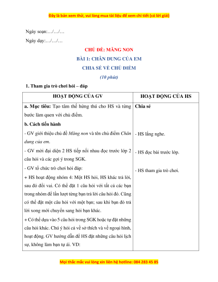 Ngày soạn:…/…/… Ngày dạy:…/…/… CHỦ ĐỀ: MĂNG NON