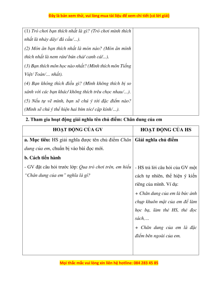 2. Tham gia hoạt động giải nghĩa tên chủ điểm: Chân dung của em