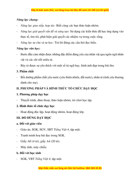 - Bày tỏ được sự yêu thích với một số từ ngữ hay, hình ảnh đẹp trong bài thơ. 3. Phẩm chất