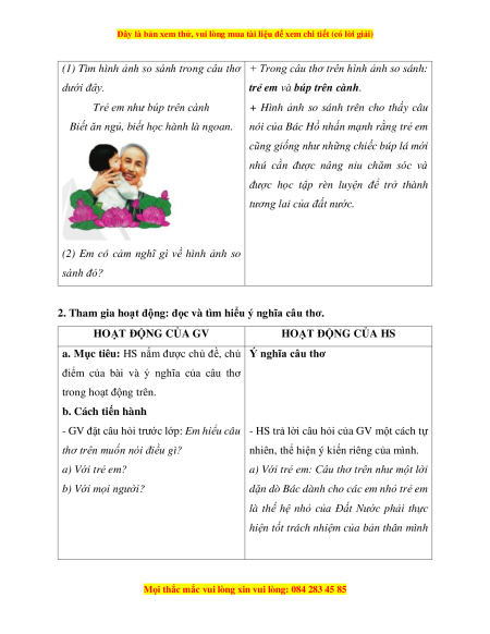 2. Tham gia hoạt động: đọc và tìm hiểu ý nghĩa câu thơ.