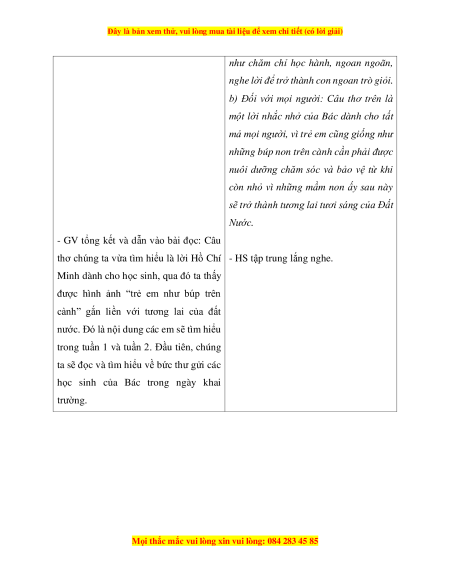 thơ chúng ta vừa tìm hiểu là lời Hồ Chí - HS tập trung lắng nghe.