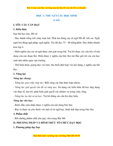 ĐỌC 1: THƯ GỬI CÁC HỌC SINH (1 tiết)