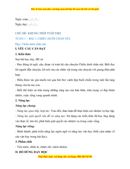 TUẦN 1 – BÀI 1: CHIỀU DƯỚI CHÂN NÚI