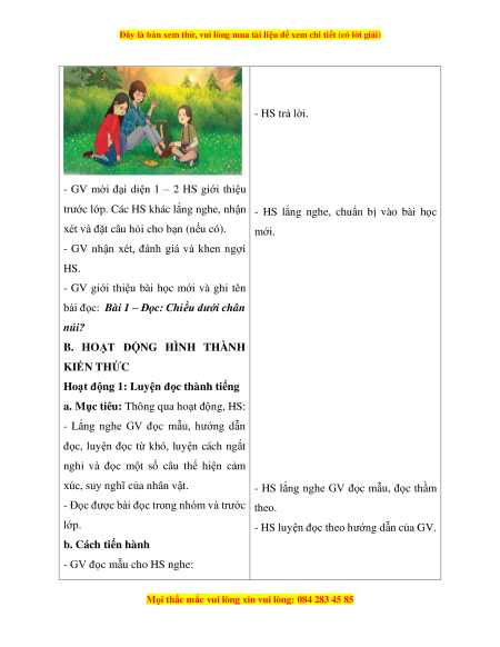 bài đọc: Bài 1 – Đọc: Chiều dưới chân núi?