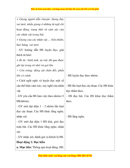 - HS lắng nghe GV đọc mẫu, đọc thầm