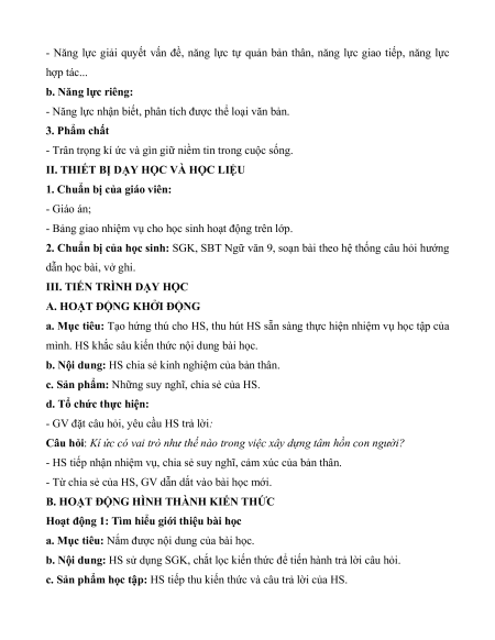 - Năng lực nhận biết, phân tích được thể loại văn bản. 3. Phẩm chất