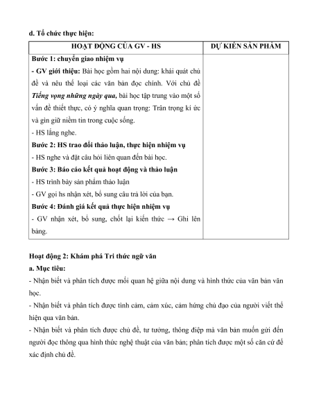Giáo án Tiếng vọng những ngày qua (Thơ) 2024 Chân trời sáng tạo