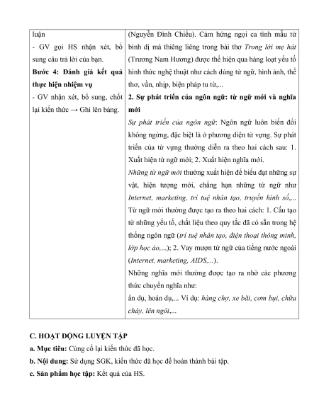 - Nhận biết và phân tích được sự phát triển của ngôn ngữ: từ ngữ mới và nghĩa mới.