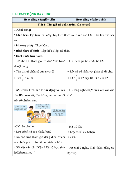 Tiết 1: Tìm giá trị phần trăm của một số I. Khởi động: