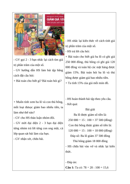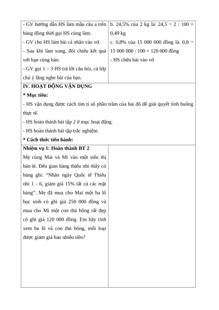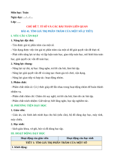 - Vận dụng được việc tìm giá trị phần trăm của một số để giải quyết vấn đề thực tế.