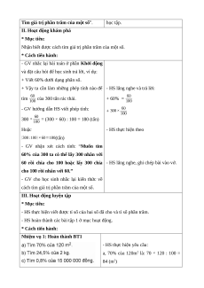 Nhận biết được cách tìm giá trị phần trăm của một số. * Cách tiến hành: