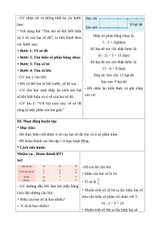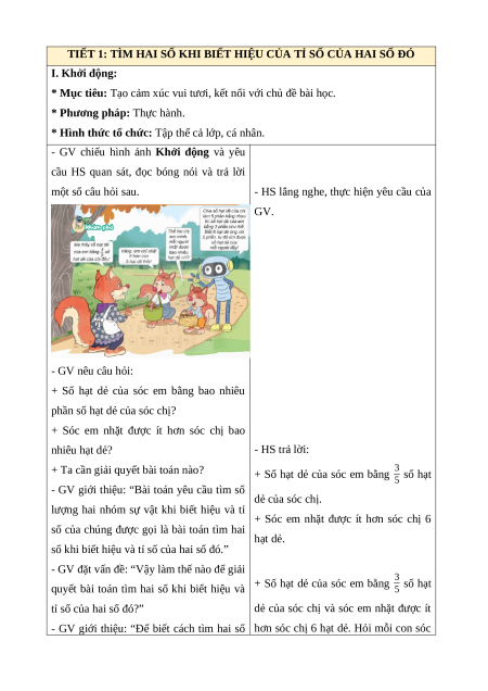 lượng hai nhóm sự vật khi biết hiệu và tỉ + Sóc em nhặt được ít hơn sóc chị 6