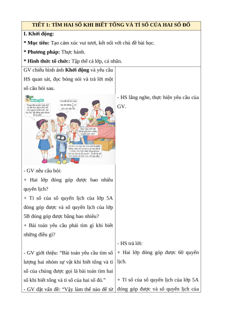 khi biết tổng và tỉ số của hai số đó; chúng lịch của cả hai lớp và tỉ số giữa hai