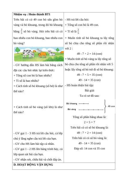 và đặt câu hỏi để học sinh trả lời, ví dụ - HS trả lời: