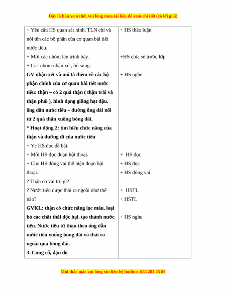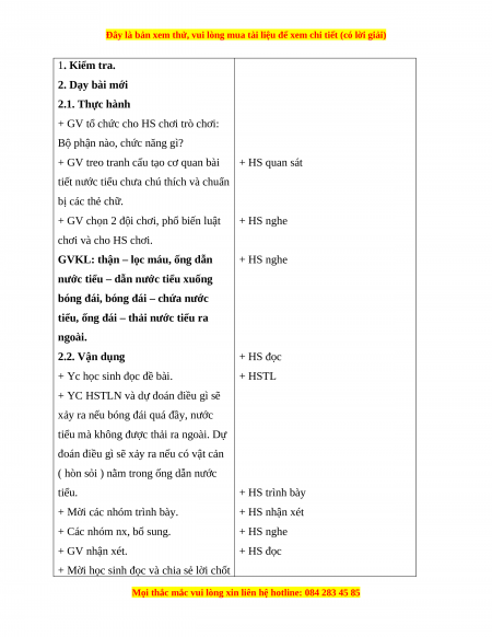 - GV: máy tính, ti vi chiếu nội dung bài, tranh cấu tạo cơ quan bài tiết nước tiểu