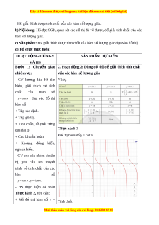 ớ HS: SGK, SBT, vở ghi, gi y ấ nháp, đ ồ dùng h c ọ t p ậ (bút, th c. ướ ..), ôn t p ậ cách s ử d n ụ g ph n ầ m m ề GeoGebra. III. TI N Ế TRÌNH D Y Ạ H C Ọ A. HOẠT ĐỘNG KH I Ở Đ N Ộ G (M Ở Đ U Ầ ) a) M c ụ tiêu: - T o ạ tâm th ế vào bài h c, ọ thu hút HS tìm hi u ể n i ộ dung bài h c. ọ b) N i ộ dung: HS đ c ọ tình hu n ố g m ở đ u ầ , suy nghĩ tr ả l i ờ câu h i ỏ . c) S n ả ph m ẩ : HS trả l i ờ đ c ượ câu h i ỏ m ở đ u ầ . d) T ổ ch c ứ th c ự hi n: ệ Bư c ớ 1: Chuy n ể giao nhi m ệ v : ụ - GV yêu c u ầ HS tr ả l i ờ các câu h i ỏ v ề đ ồ th ịvà tính ch t ấ hàm l n ượ g giác. + Hãy nêu các tính ch t ấ sau c a ủ hàm s