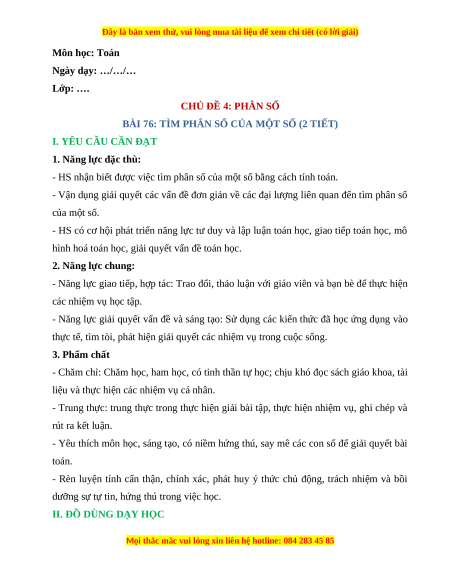BÀI 76: TÌM PHÂN SỐ CỦA MỘT SỐ (2 TIẾT)