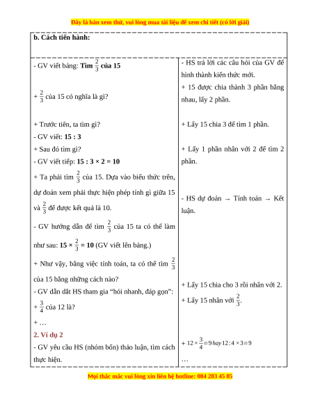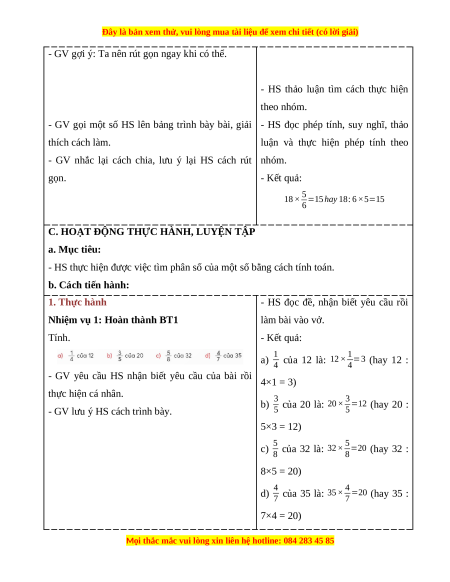 - HS nhận biết được việc tìm phân số của một số bằng cách tính toán.